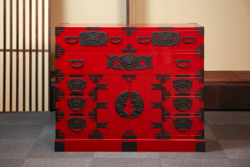 主材 欅突板使用/塗装 朱漆仕上げ/金具 飾り金具付き